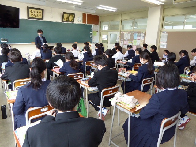 4月25日(金)1年生 1限 その2 公開日 2025/04/26 更新日 2025/04/25 1学年 4組は、英語でした。英語にも音読みと訓読みがある?というような内容でした。5組は、英語でした。教科書の題字の意味から学んでいました。6組は、数学でした。4つの数字を使って「10」を作ろうということをしていました。
