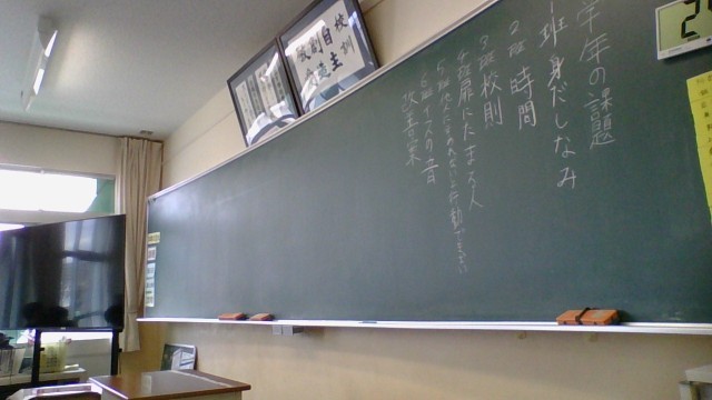 5月7日(水) 2学年 学年の課題とは? その1 公開日 2025/05/08 更新日 2025/05/07 2学年 5限2学年は、学年が抱えている課題とは何かということを考え、生活班で話し合ったり、学級全体で話し合ったりしました。写真 上:2年1組 中:2年2組 下:2年3組 +1