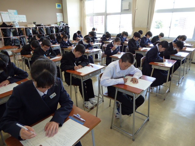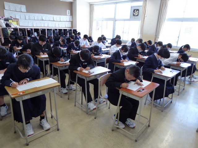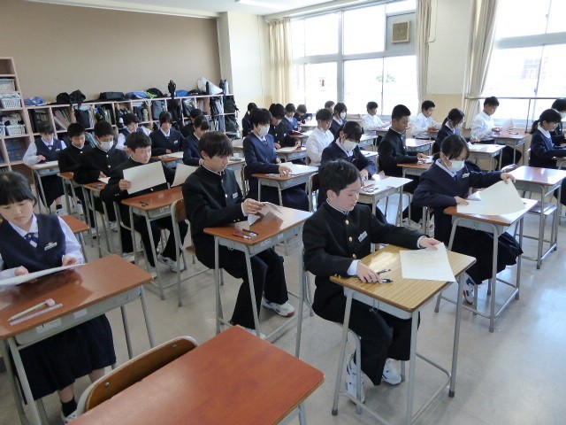 5月8日(木) 1学年 5限授業の様子 その1 公開日 2025/05/08 更新日 2025/05/08 1学年 全クラス確認テストを行いました。前半は、担任からテストの受け方についての説明がありました。最初の教科は国語でした。1・2・3組の様子です。