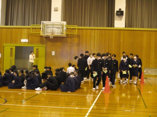 5月9日(金) 3学年 JR乗車確認 公開日 2025/05/09 更新日 2025/05/09 3学年 1限は体育館で、新幹線にスムーズに乗車するための隊形などについて確認しました。ホームに並ぶ隊形や乗り降りをする際の注意点について、実際にシミュレーションをしながら確認しました。