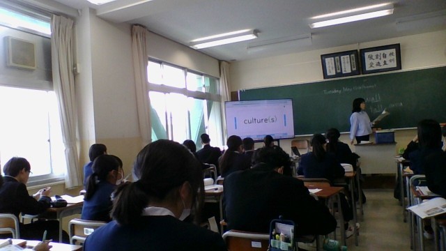 5月13日(火) 2学年 授業の様子 その2 公開日 2025/05/14 更新日 2025/05/13 2学年 写真上:2年4組 社会科 江戸時代の産業についてまとめています。下:2年6組 英語科 単語の確認中「Culture」とは・・