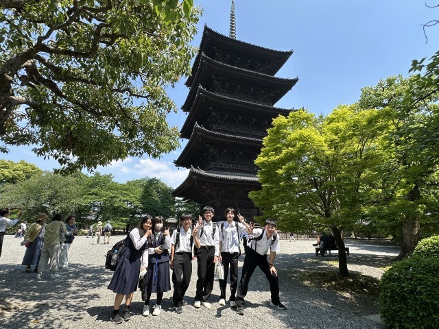5月14日(水) 修学旅行1日目26 公開日 2025/05/14 更新日 2025/05/14 3学年 東寺を見学しました。五重の塔に加えて通常非公開の文化財の特別公開もあり、世界文化遺産の三尊も見ることができました。