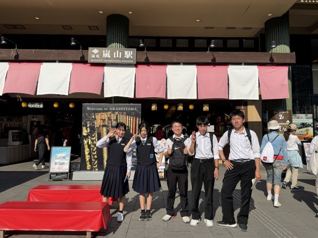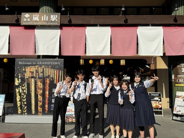 5月14日(水) 修学旅行1日目28 公開日 2025/05/14 更新日 2025/05/14 3学年 班別学習も終盤です。今日の京都は日差しが強く、日焼けをした生徒も多いようです。嵐山では、冷たい物を飲んで少し涼んでいました。