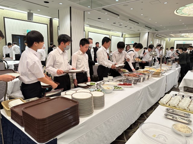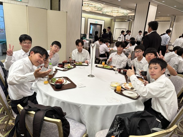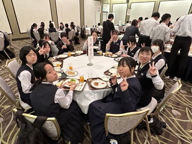5月15日(木)修学旅行2日目① 公開日 2025/05/15 更新日 2025/05/15 3学年 朝食はブッフェ形式みんな好みのメニューをとって席について食べます。2日目の活動に備えてエネルギーチャージです。 +1
