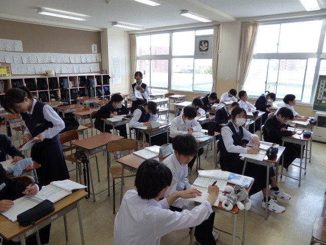 5月15日(木) 1学年 授業の様子 その1 公開日 2025/05/15 更新日 2025/05/15 1学年 1限の様子です。1組は、英語でした。2組は、数学でした。1学年の数学は、今年も少人数に別れての授業です。3組は、社会でした。 +1