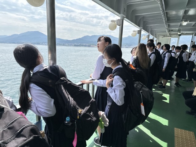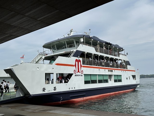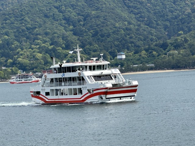 昼食後、フェリーで瀬戸内の絶景の海を宮島へのつかの間の船旅です。