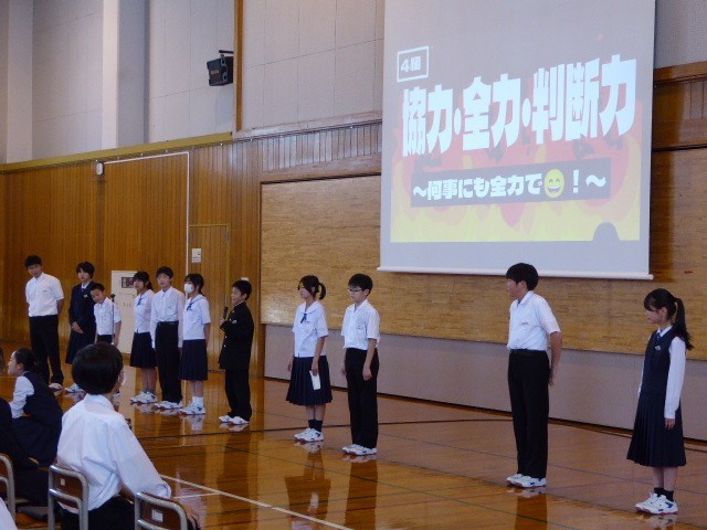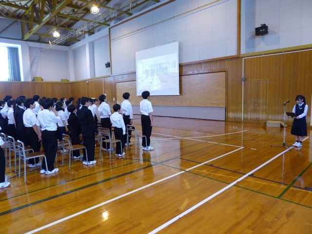 各学級代表の紹介と学級目標の紹介、学年目標の紹介がありました。