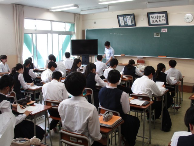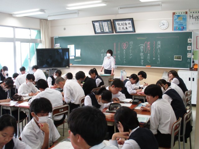 6月4日(水) 3学年 授業の様子(3限①) 公開日 2025/06/04 更新日 2025/06/04 3学年 1組は保体でバレーボールをしました。スパイクを打つ姿勢を動画で調べました。2組は英語で、確認テストの返却をしました。3組は国語で、修学旅行の振り返りを俳句にし、互いの俳句を詠み合いました。