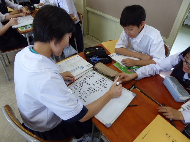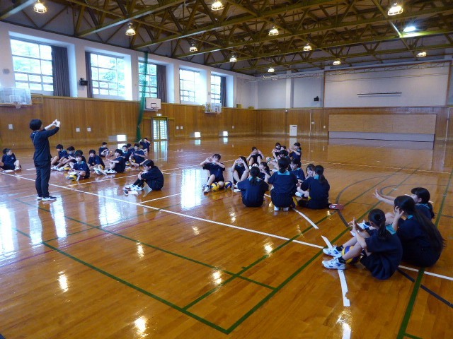 4組は、保健体育で、バレーボールのオーバーパスについての説明を聞いていました。