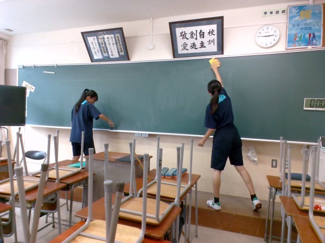 教室の床も黒板もピカピカです!