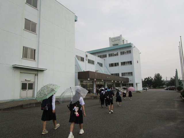 7月2日(水) 登校の様子 公開日 2025/07/02 更新日 2025/07/02 学校だより 登校の時間帯は、雨が降ったり止んだりでした。 2年生は、『14歳の挑戦』3日目です。本日も、よろしくお願いいたします。