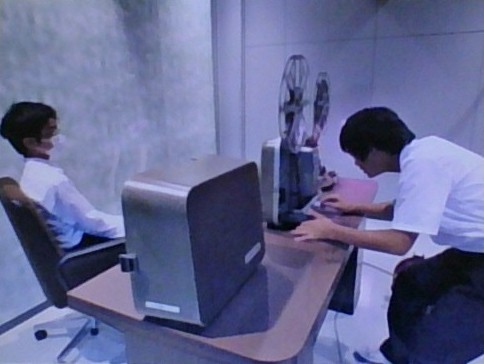 ある年代の方には、昔懐かしい「映写機」を見学しています。