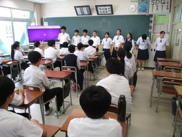 実行委員会や団役員に立候補した生徒がそれぞれの思いを演説しました。