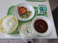 給食週間「学びをぱくり! おいしい教科書」の3日目は音楽です。献立は、ごはん、...