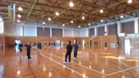 明日の校外学習の結団式を体育館で行いました。ます引率者の紹介、次に引率責任者の話...