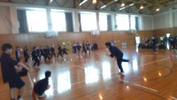 体育館で学年生徒会主催でドッジボール大会が開催されました。初めに代表の挨拶、次に...