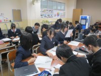 各学級の生徒は熱心に学校薬剤師の方の話に聴き入っていました。写真 上:4組 中:...