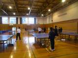 テニスコートのフェンスに奥田中学校卒業生の中嶋友菜さんの横断幕が同窓会及び奥井...