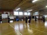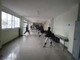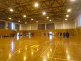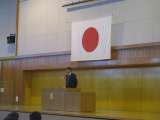 奥田中卒業生ウエイトリフティング中嶋友菜さんの横断幕が掲げられています