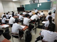 休み時間次のテスト「理科」に備えてワークブックの確認をお互いにしたり、前の時間に...