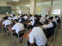 2限2年生の夏休み明けテスト2教科目は「国語」です。真剣に問題に取り組んでいます...