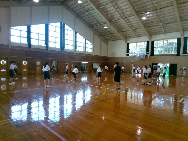 2年生の保健体育です。バレーボールのゲームをしていました。みんなで仲良く楽しく活動していました。