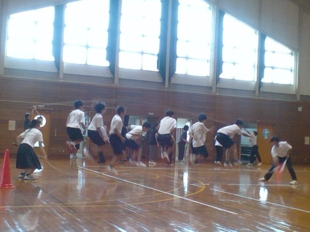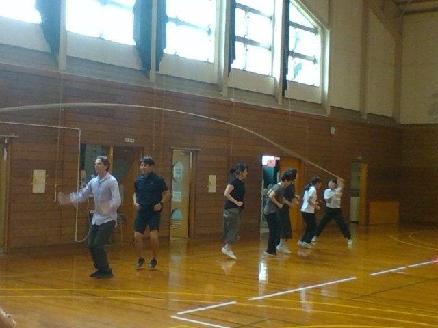 最後は大縄対決です。生徒2チーム、先生1チームです。時間内により多く飛んだチームの勝利です。最終結果は、先生チームが勝利しました。生徒、先生との交流が深まり、仲よくなれた楽しい時間でした。執行部の皆さんありがとうございました!!