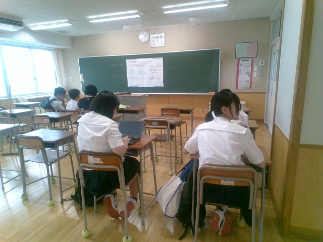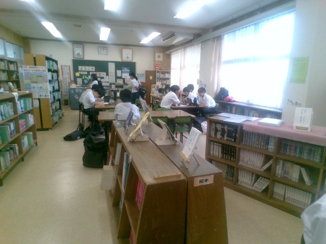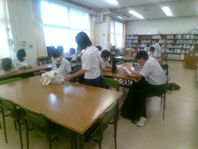 保護者懇談会を待つ時間を学習室や図書室で過ごしています。