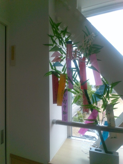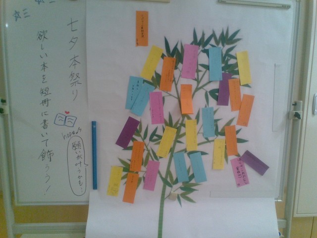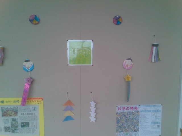 校内に七夕飾りがありました。図書委員会のものは紹介していましたが、いずみ級前にもありました。
