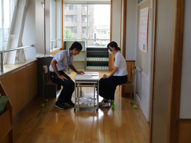 今日は一学期の最終日。各学級では一人一人に担任から通知表が渡され、一学期の頑張りや夏休みの目標等について話をしました。また、机の中やロッカーを整頓し学習に必要なものを荷物にいれました。「よく学び、よく遊べ」の夏休みになるよう過ごしましょう。