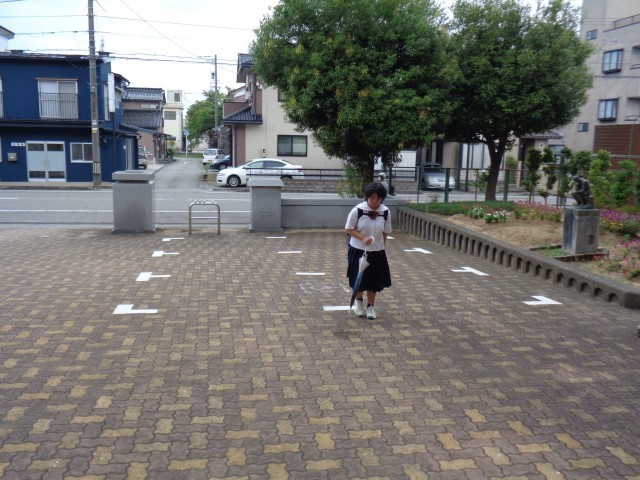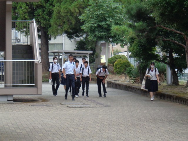 今日から2学期です。元気に登校しています。手には夏休みに作った作品を持っている人がいます。今学期も元気に頑張りましょう。