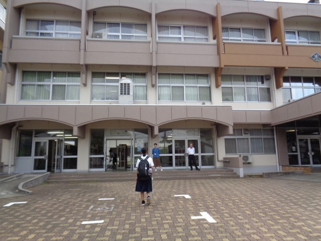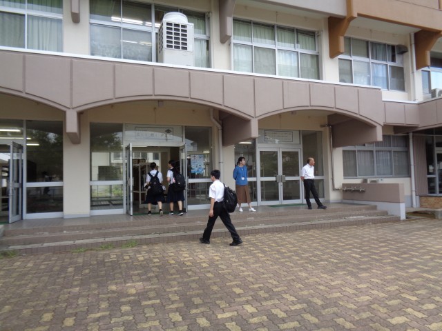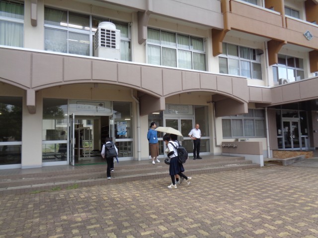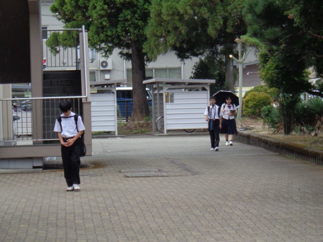 登校の様子です。今日は少し涼しくなる予報が出ています。