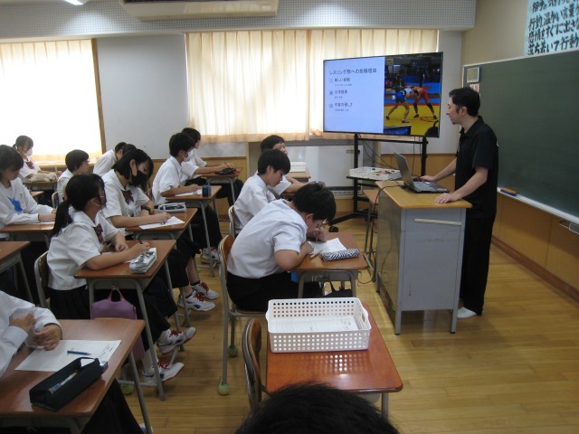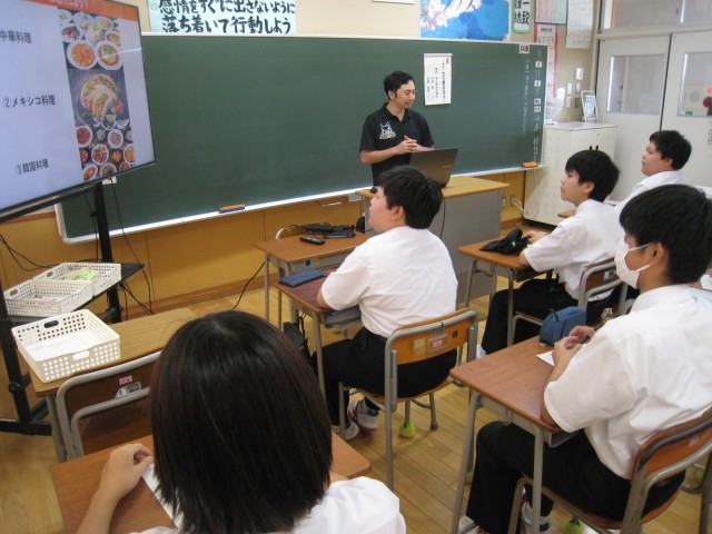 5、6限目は、キャリア講演会です。1、2年生は、富山青年会議所の坪坂 暁さん、矢郷 勇樹さんの「挑戦~その一歩が可能性を広げる~」の講演を聞き、働くことの意義について学びました。