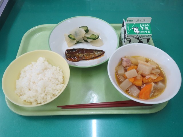 牛乳・筑前だき・酢の物・いわしの生姜味・ごはん