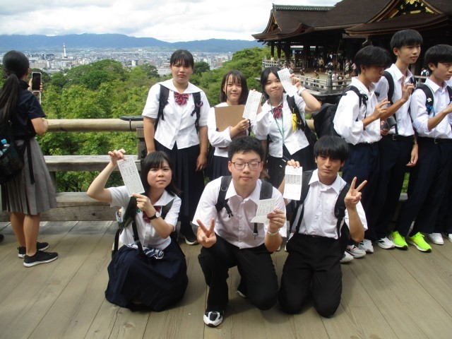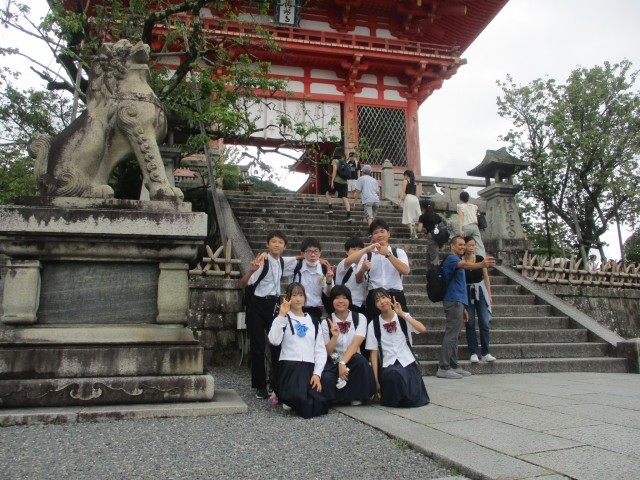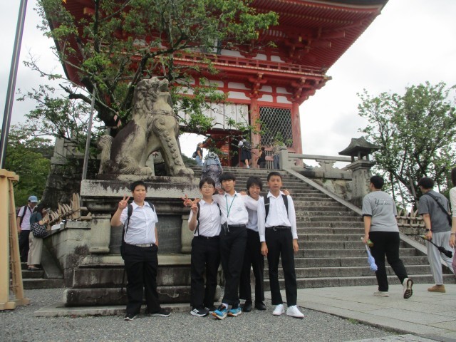 京都班別学習は、心配された雨にはあいませんでしたが、とても蒸し暑い天候でした。念のために塩分タブレットを生徒全員に配り水分を意識して取るよう伝えました。最後の集合には、時間通り全員が集まることができました。