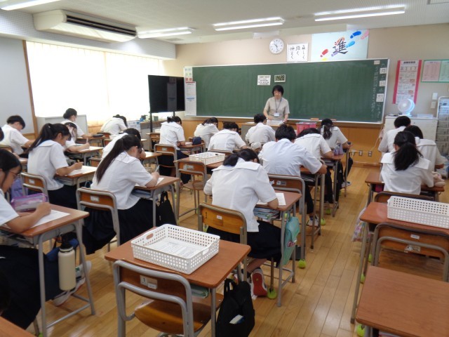 2年生の数学です。静かに取り組んでいたのは、小テストでした。