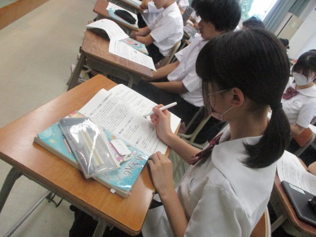 資料にアンダーラインをひき、ポイントをチェックしている生徒もいました。
