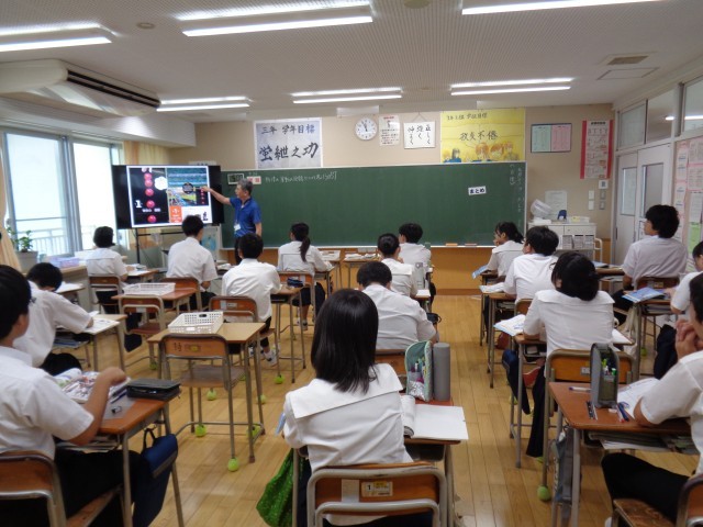 1年生保健体育、2年生社会、3年生国語、理科の授業です。