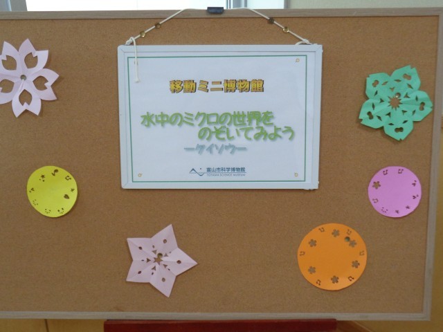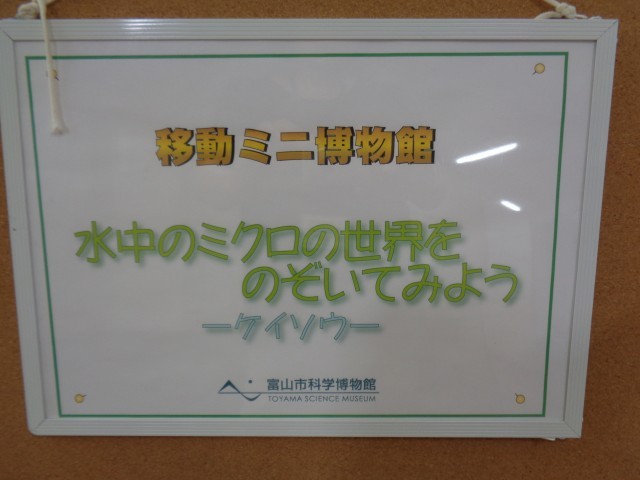 移動ミニ博物館の展示が変わりました。今回は「水中のミクロの世界をのぞいてみよう~ケイソウ~」です。