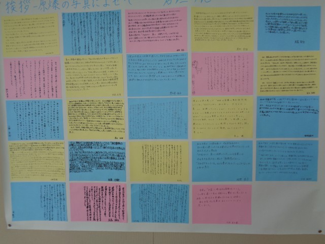 3年生の廊下掲示です。授業で取り組んだ頑張りがよくわかります。