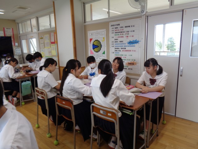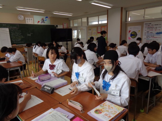 2年生の技術家庭科です。調理実習の計画をグループで考えています。