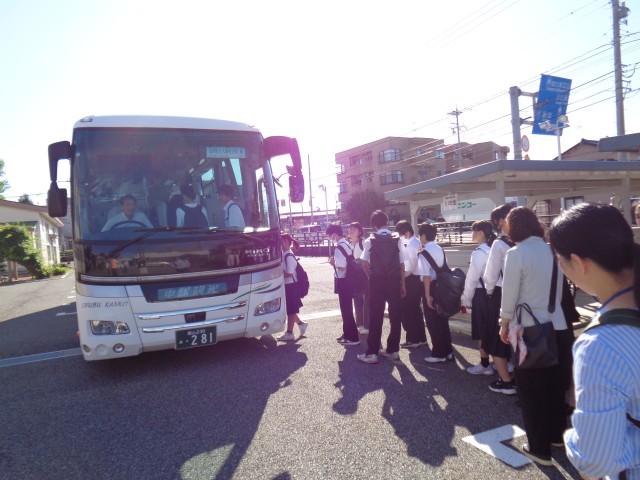 1年生は企業見学に出発しました。Aコースはケーズメタル、Bコースは富山県総合デザインセンターを見学します。