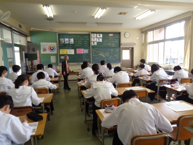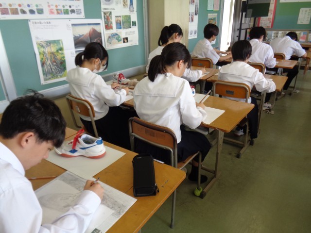 1年生の美術です。授業参観で途中経過を見ていただきました。文化活動発表会に向けて、作品の仕上げに入っています。あと少しで完成です。