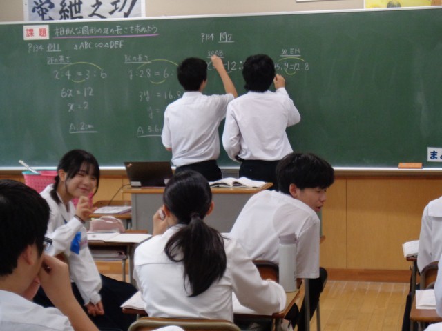 3年生は、数学と理科です。数学では相似の学習をしています。