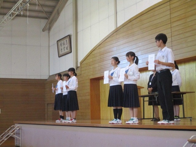令和7年度後期・8年度前期生徒会任命式が行われました。校長先生から新執行部に任命書を手渡されました。また、新専門委員長には生徒会長から任命書を手渡しました。任命書をもらった生徒たちは緊張した表情の中にも、「がんばりたい!」というやる気が伝わってきました。新執行部・専門委員会を中心により良い大泉中になるよう全校で協力していきましょう。