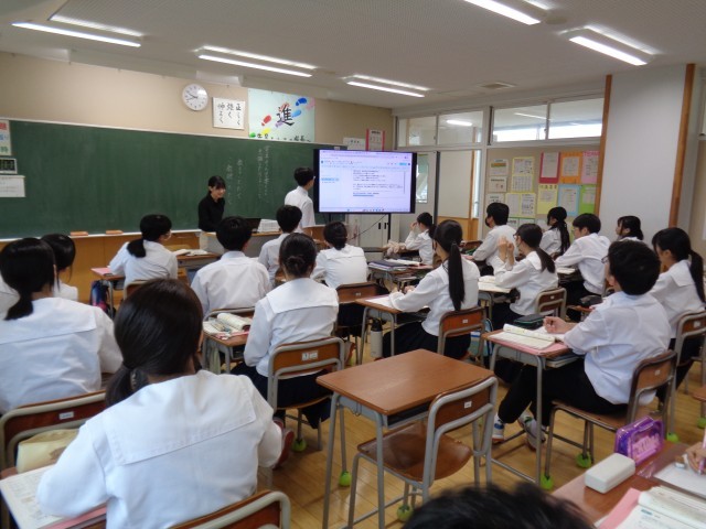 2年生の国語です。考えて書いた文章について発表しています。