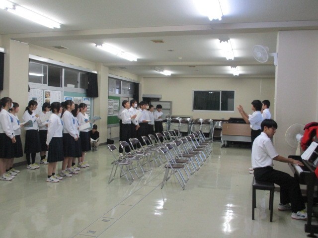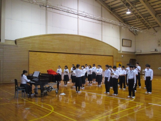 今日の合唱練習の様子です。明日は、いよいよ学年リハーサルです。どのクラスも全体を合わせた練習を行っていました。