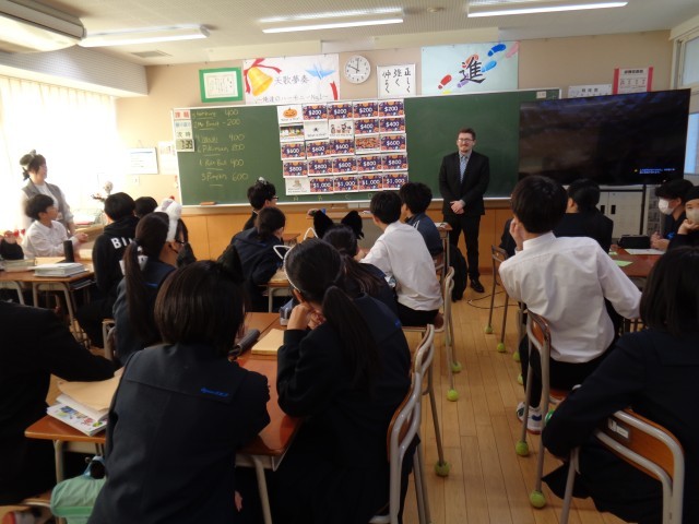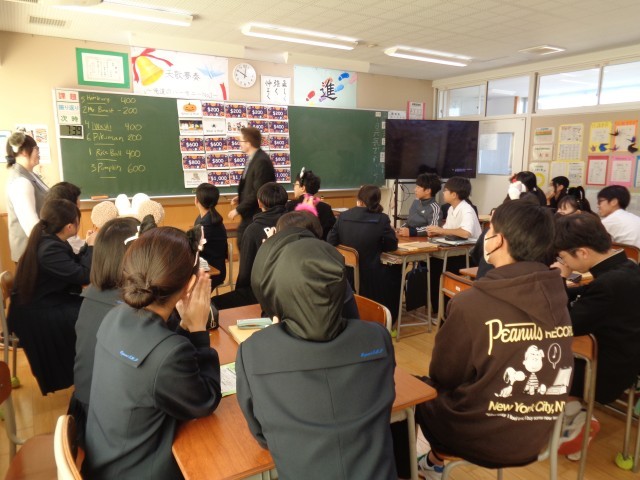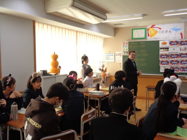 2年生の英語です。みんな仮装?をして楽しく学習を進めています。