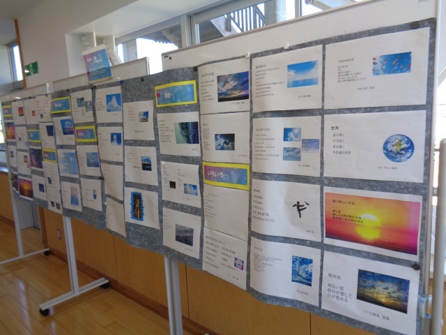 1年生の国語作品が掲示されています。