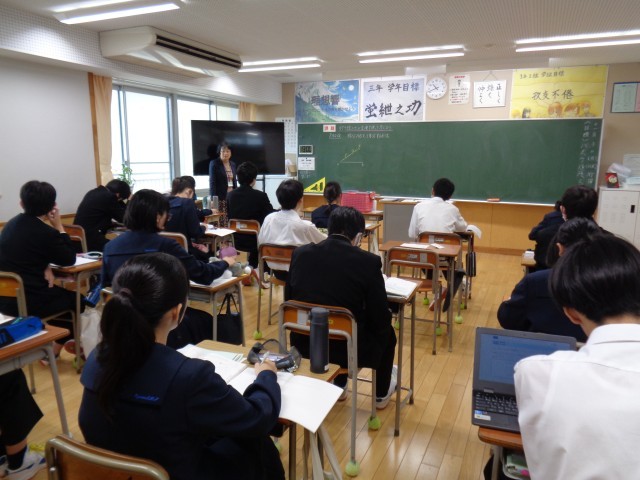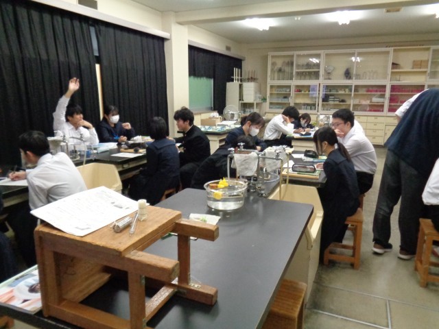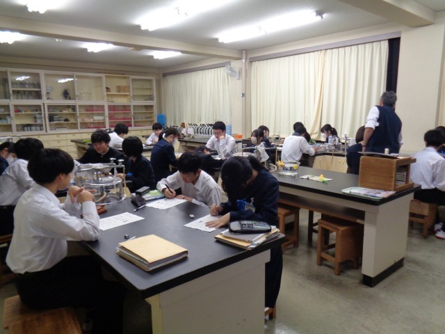 3年生は数学、理科です。理科は理科室で圧力の学習をしていました。